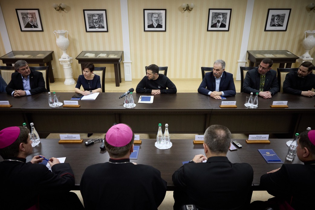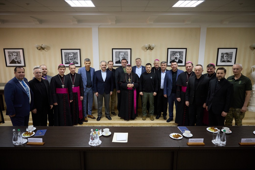 President of Ukraine Volodymyr Zelenskyy met with the heads and representatives of evangelical Protestant churches and the bishops of the Roman Catholic Church in Ukraine. The meeting was held on April 2, 2024, at the House of the Bible of the Ukrainian Bible Society.
