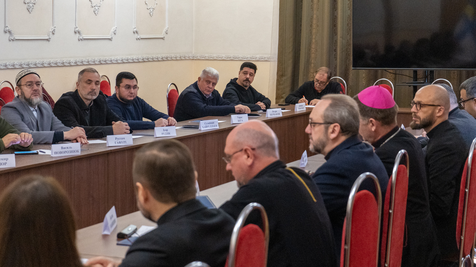 On October 24, 2024, members of the Ukrainian Council of Churches and Religious Organizations (UCCRO) met with the Deputy Minister of Veterans Affairs of Ukraine, Farhad Farhadov, at the Central House of Officers of the Armed Forces of Ukraine in Kyiv. During the meeting, various aspects of denominations' activities in the context of spiritual, social, and humanitarian support for veterans transitioning back to civilian life after military service were discussed.